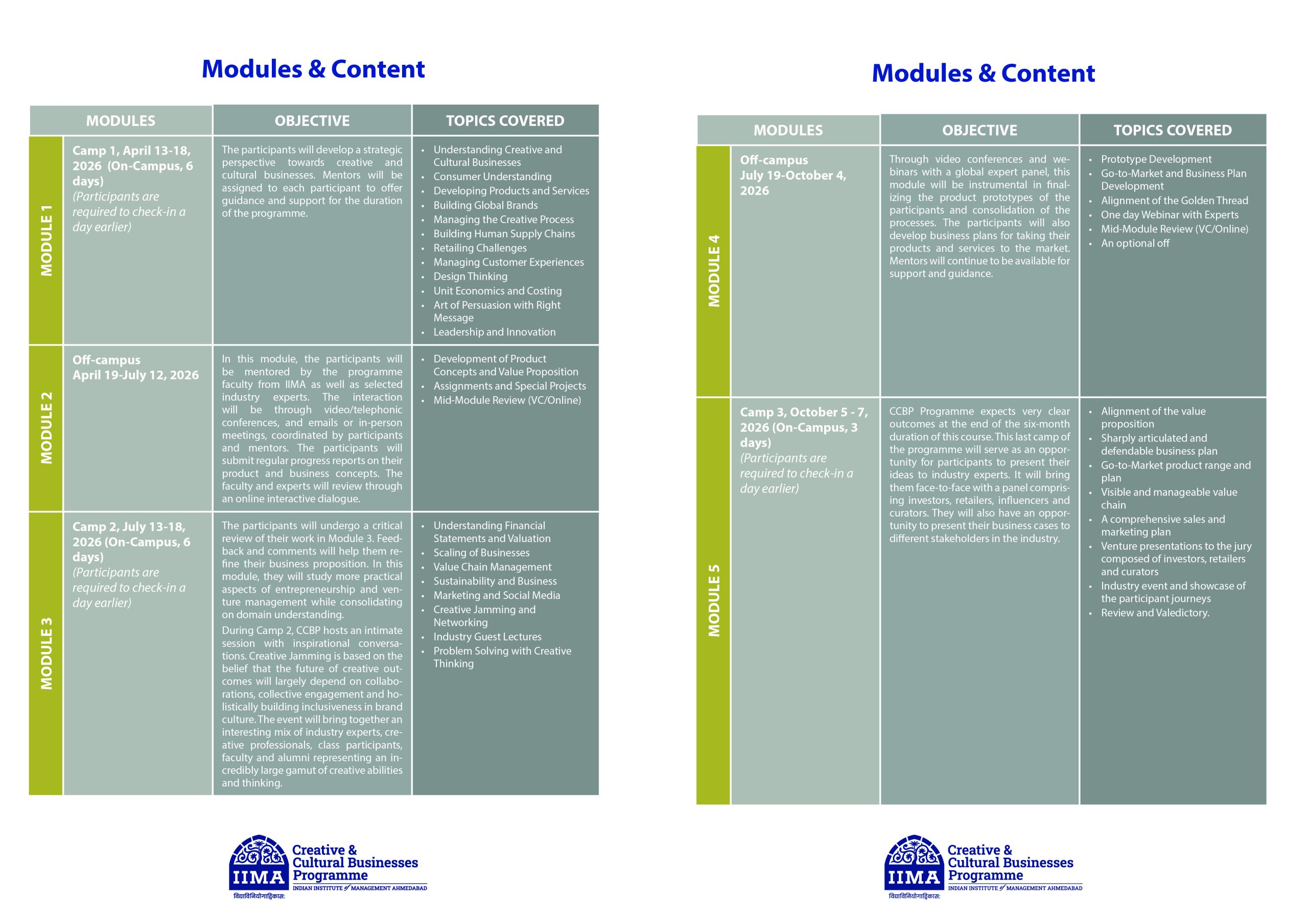 This 15 day programme will be delivered through 3 sets of in-class interactions on campus (camps) across 6 months, with research, assignments and online interaction between camps. It will involve (i) three academic camps, (ii) presentations and discussions led by faculty and experts (brand owners, craftsmen, retailers, and consultants), (iii) project critiques, (iv) mentor engagement (v) webinars, (vi) brainstorm and network with contemporary thought leaders in the design space and (vii) platform to present business ideas to industry experts and stakeholders.